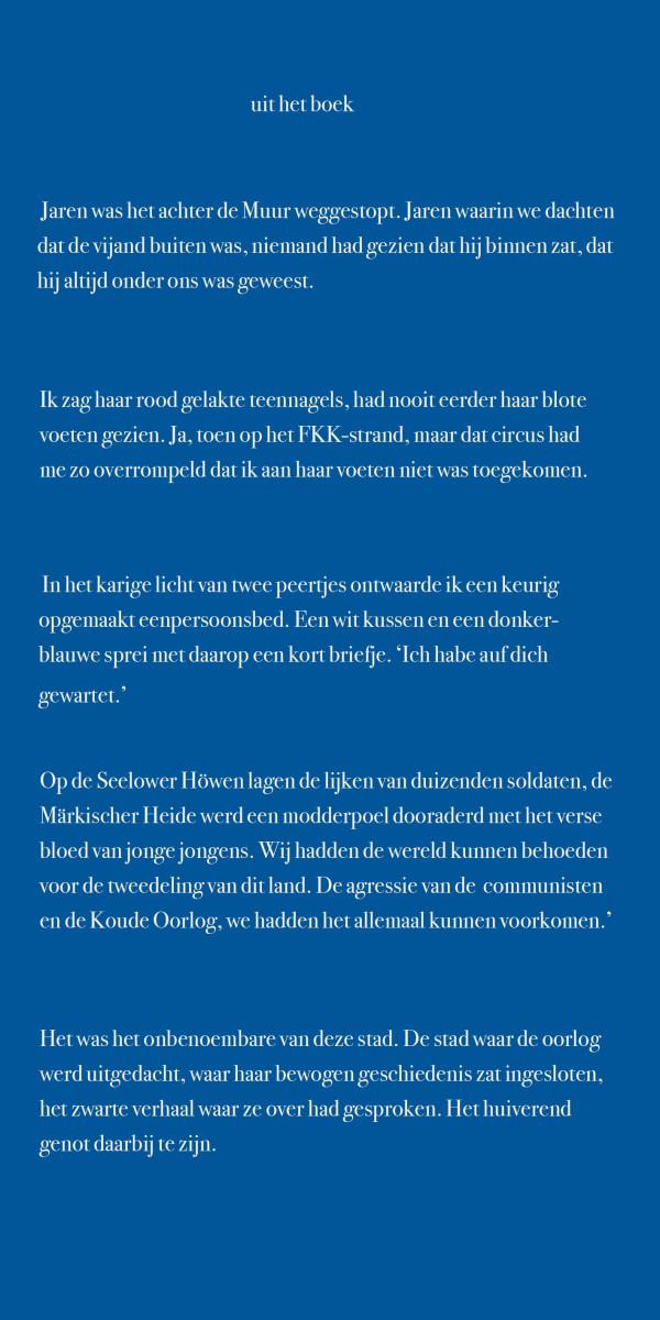 In 2019 gaat hij terug voor de viering van 30 Jahre Mauerfall met zijn vrienden van toen. Een onvergetelijk slotakkoord, een louterend hoogtepunt. Met haar in het allermooiste blauw.